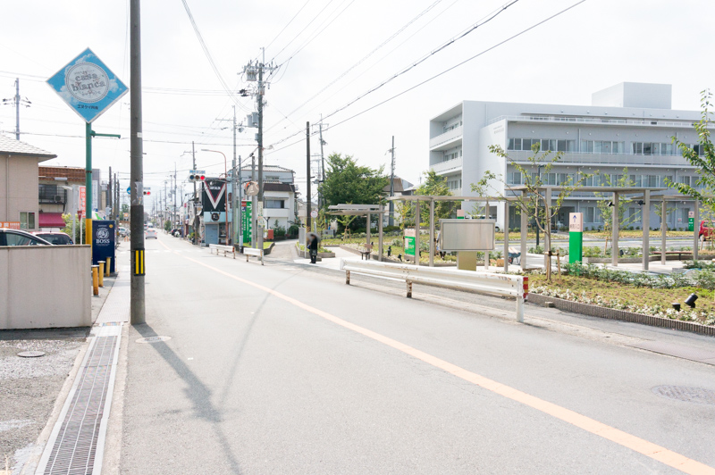 駐車場と一緒に整備されたバス停は、前を通行する自転車や歩行者とのスペースもできて、バスを利用している方も安全に待つことができそうです。