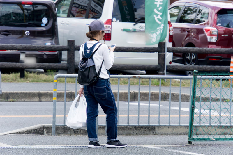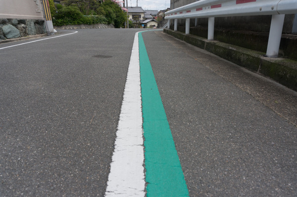 「もう1枚、道そのものにクローズアップした写真を。東香里小周辺の道にはこんな白と緑のダブルラインがひかれているんです!なんだかおしゃれやし、児童の安全も考えられていい道やなーと。」