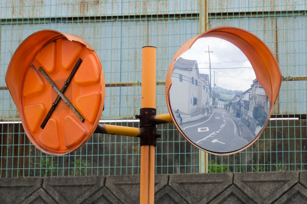 「こちら!1番はやっぱり東香里小が名物な気がするので、2番目はその東香里小の前にあるこいつで。ミラーが片方とれてて☓になっているし、止まれが下の方にあるので多分止まってこのミラーを見ろってことのはず。きっとちょうど2番目の名物。バツミラーの下で待ち合わせな!的な」