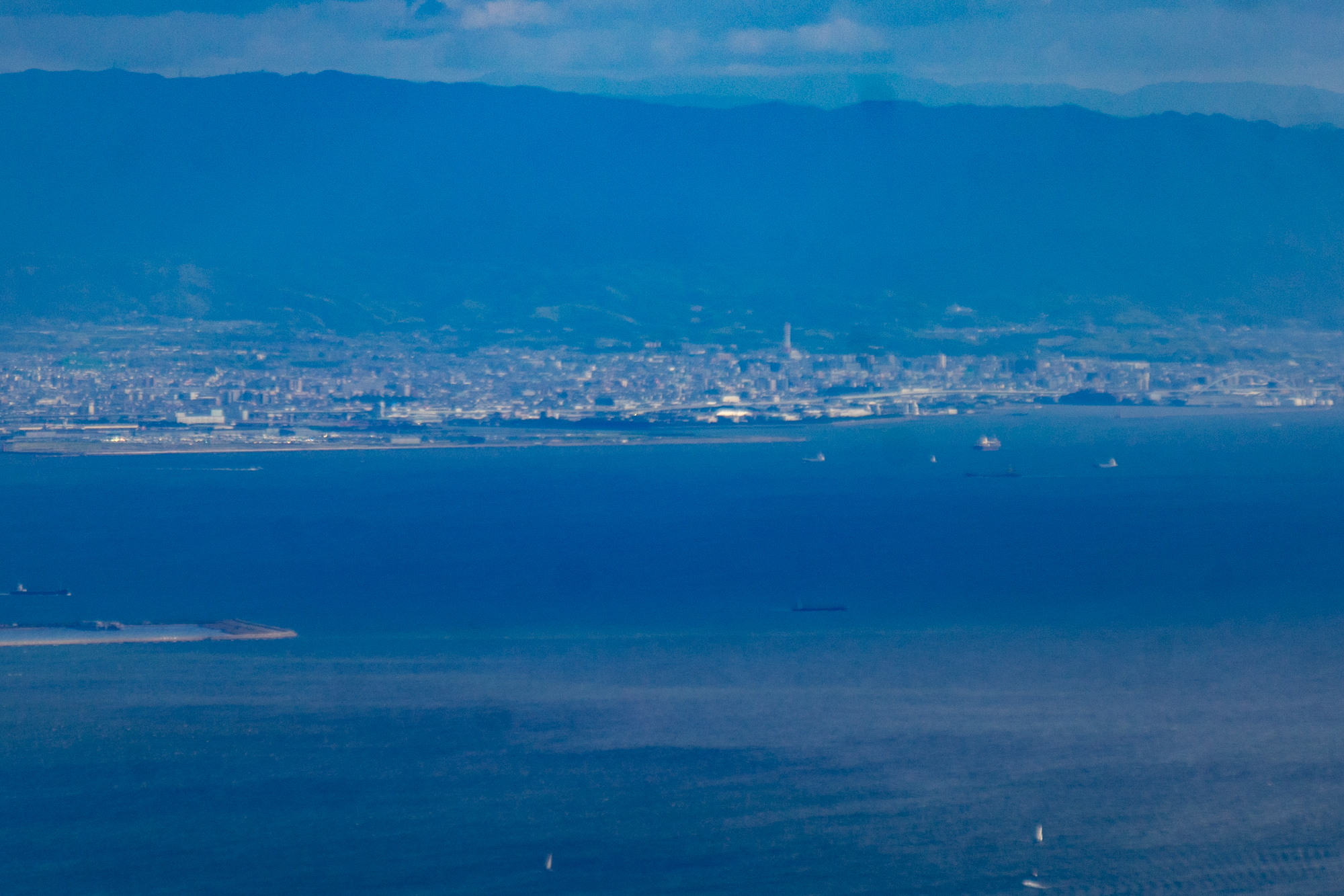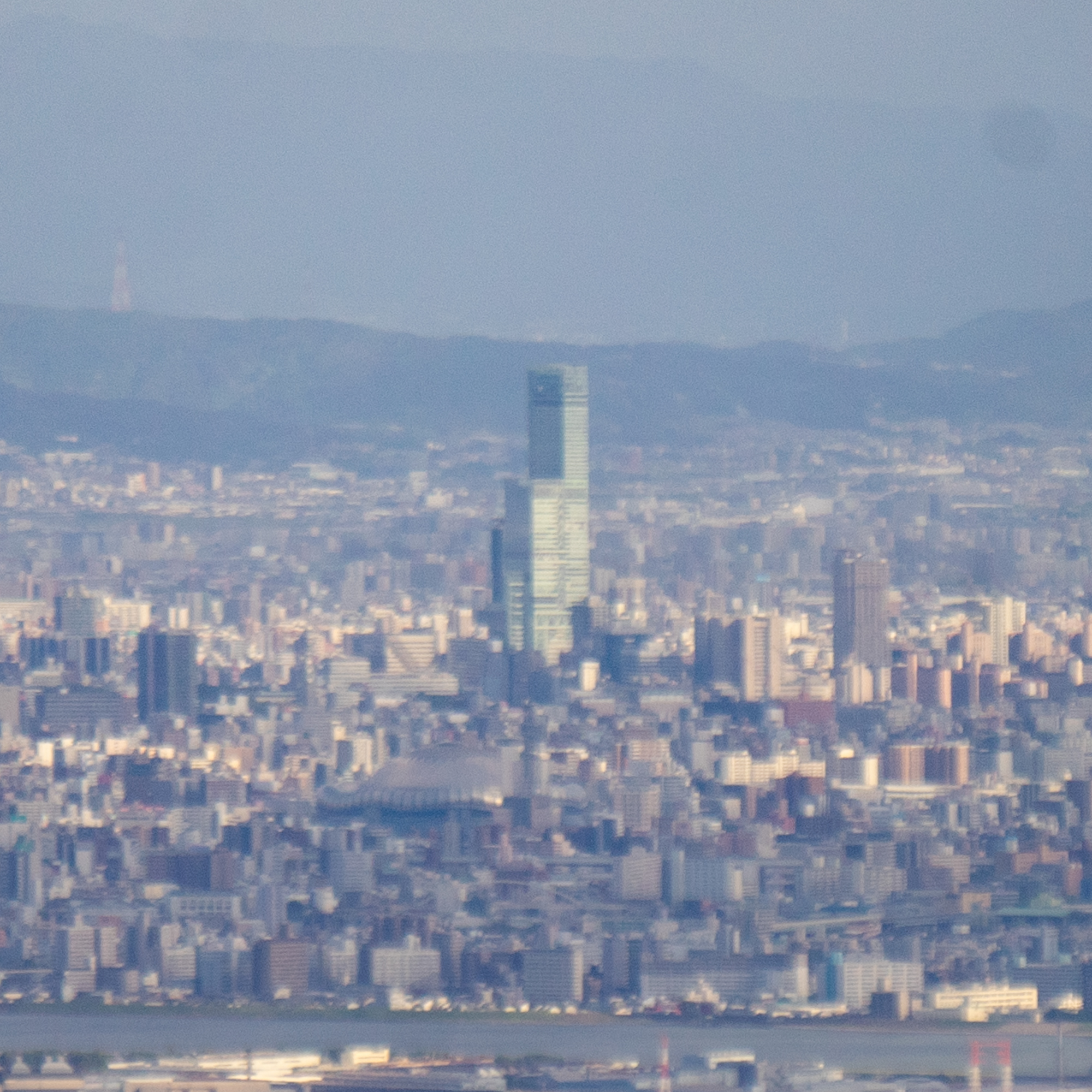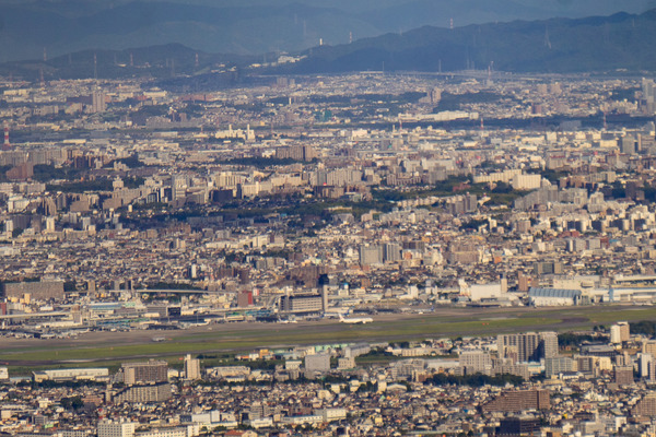 これは伊丹空港(写真下部)が撮りたくて撮影した写真で、今日は少なかったですが離陸着陸がこの角度で見えたりして嬉しい。これは肉眼でも全然見えます。