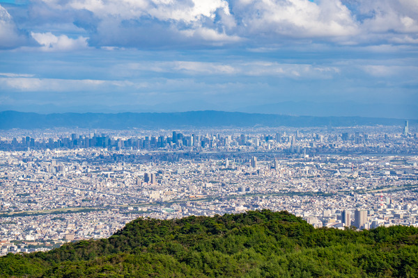 と、こんな感じで大阪平野が一望できる景色です。大阪市内めっちゃ見える!