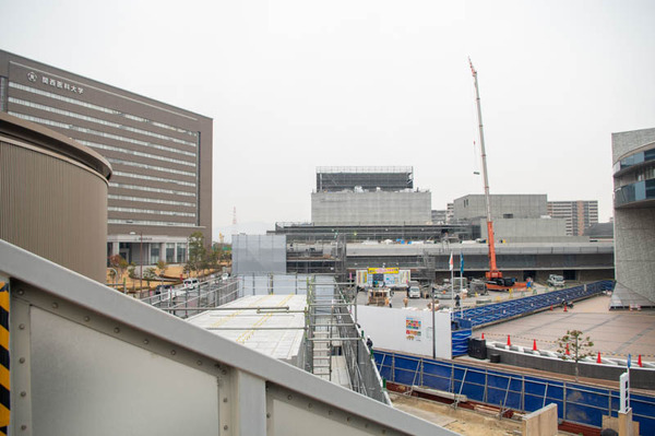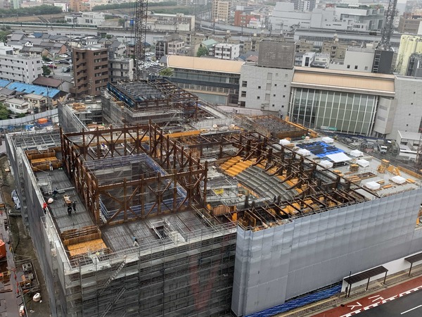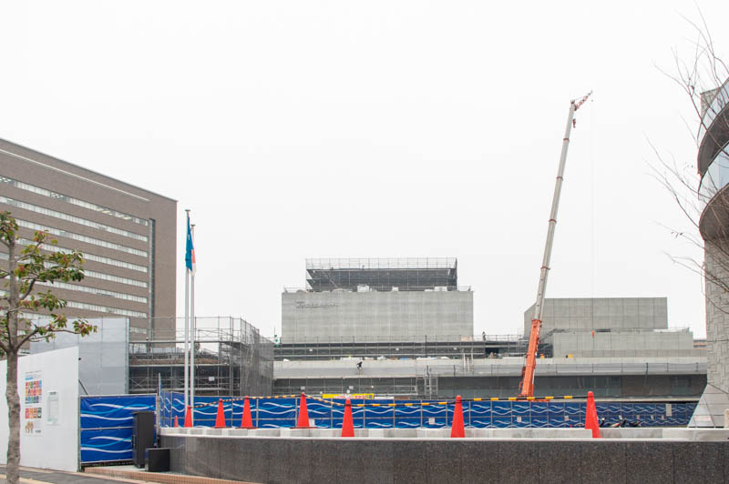 ここから総合文化芸術センターまで続く歩行デッキの工事が行われていました。