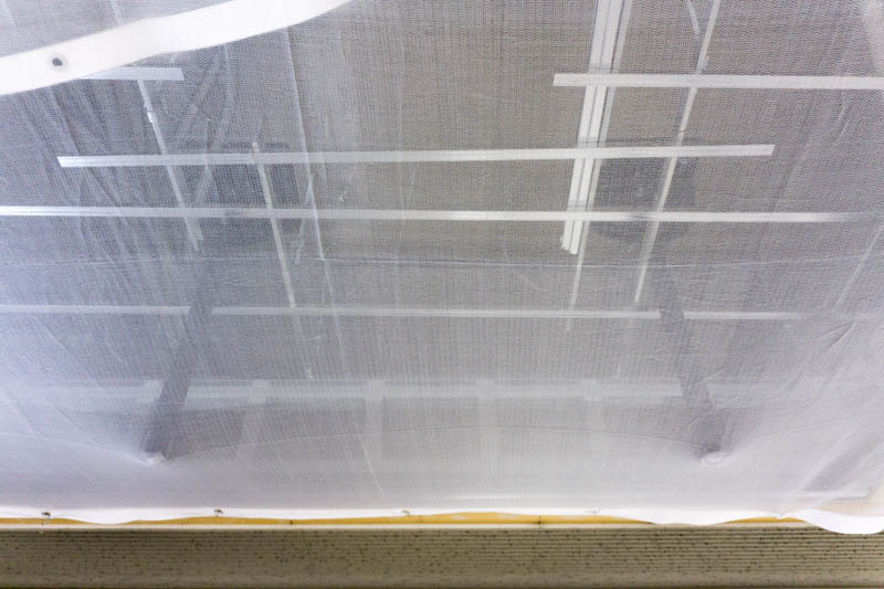 ですが、切符売り場と改札周辺を撮影したこの写真でいうと、左上の天井部分にシートがかかっているのがおわかりになるでしょうか。
