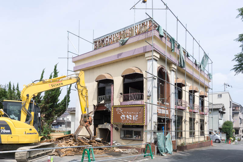 国道170号線沿い伊加賀西町にあった喫茶店「平野屋」の建物が解体されはじめています。