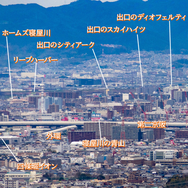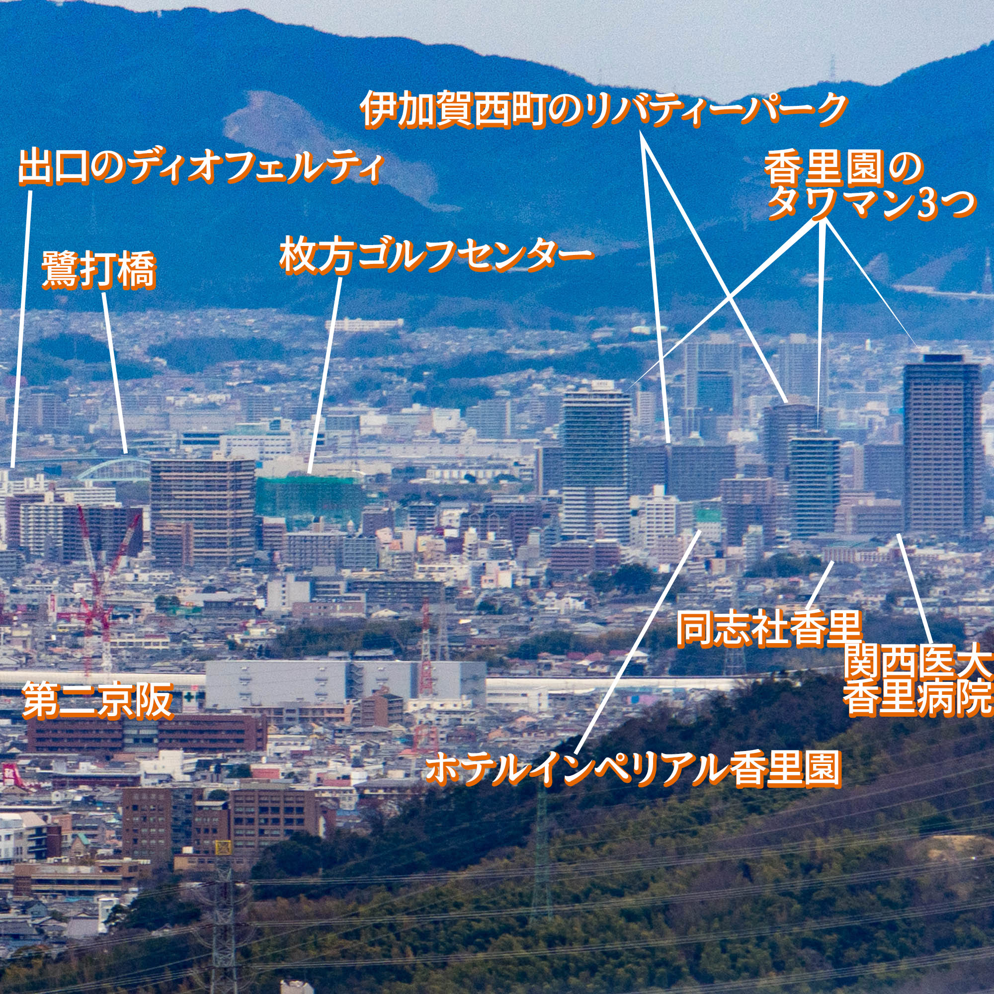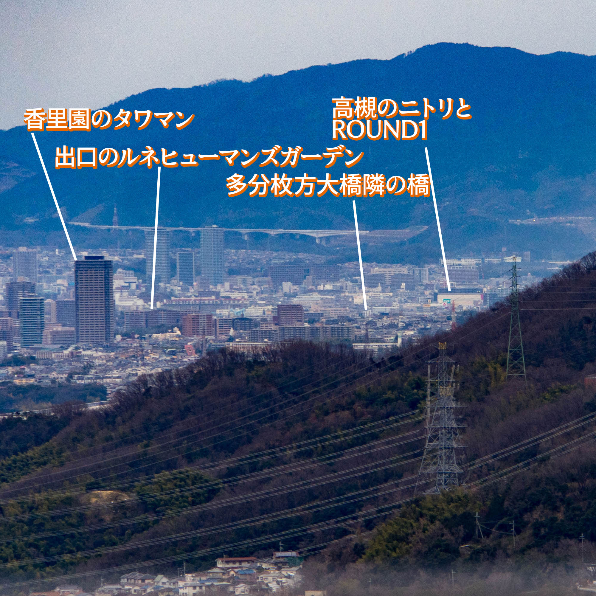 大まかにいうと、枚方市内の南部の一部しか見えないけどほかはめっちゃ見える景色スポット!