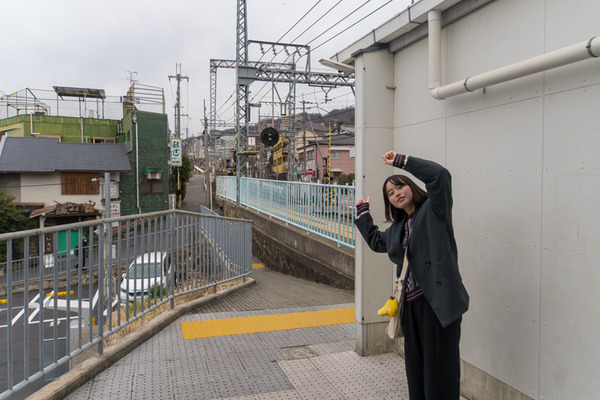 (3)改札から出るとこっちのスロープの方へ。線路沿いの方ですね。