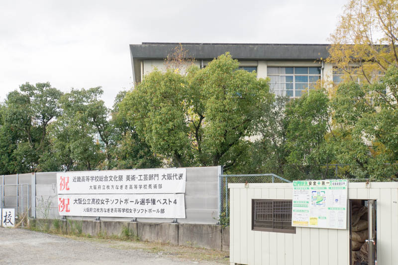 枚方なぎさ高校の目の前の道路。美術部と女子ソフトボール部が活躍しているようです。