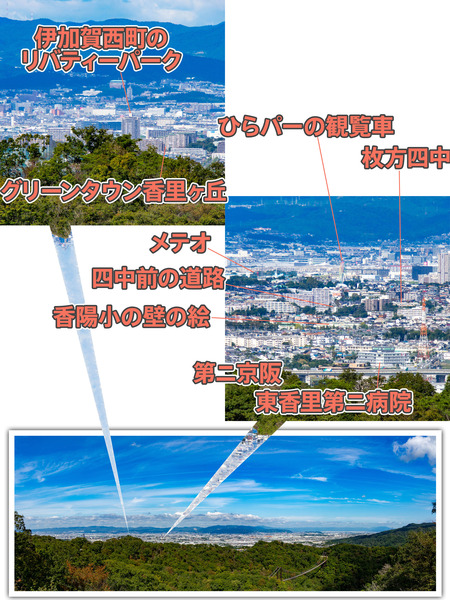 この企画の時はだいたい見える村野浄水場と関西医大中宮キャンパスが登場。