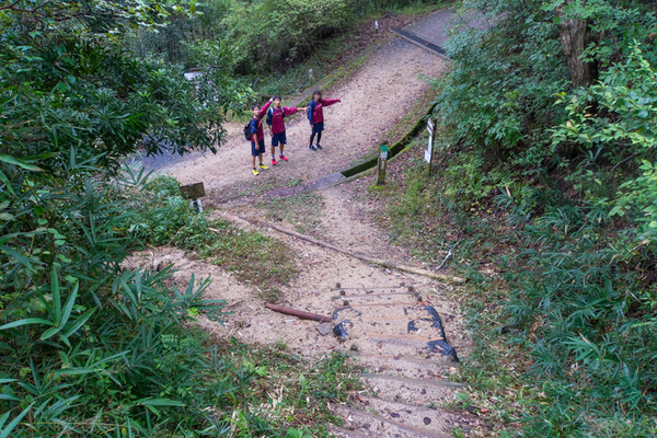 (21)ほしだ園地に入って階段をくだった(15)のところで、展望台へは右へ行きましたが、星のブランコは左です。