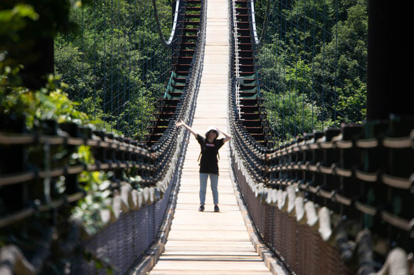 延長280m、最高地上高50mを誇る日本最大級の木床版人道吊り橋。