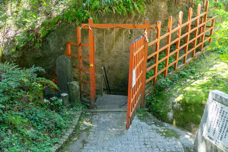 その先にあるのは天の岩戸。あの天照大神(あまてらすおおみかみ)(→wikipedia)が引き篭もったとされる場所がありました。(ゲームならここでイベント発生のあと、特殊な武器をもらえそう。)