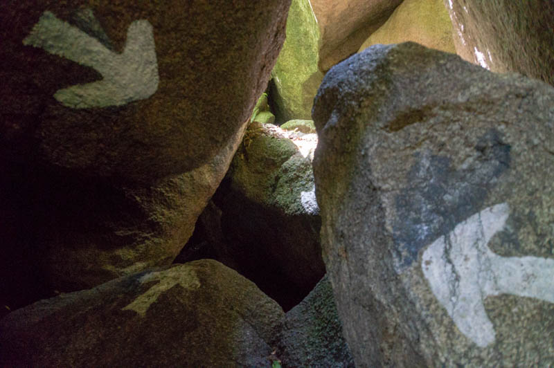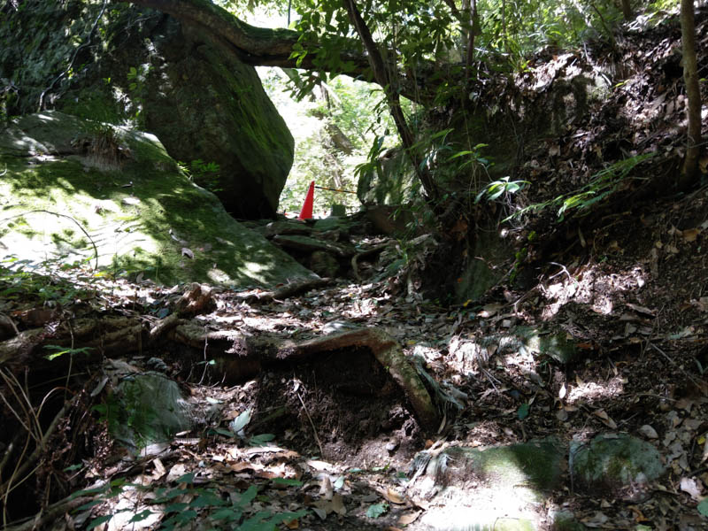 細い道を矢印にしたがって進んで行きましょう。滑りやすい場所もあるのでガンガンいこうぜではなく、命を大切に。