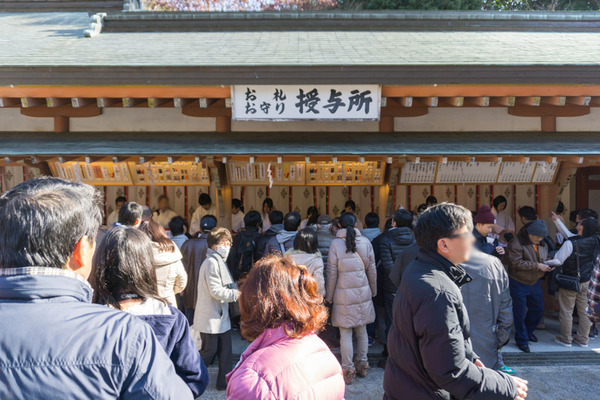 2カ所に分かれていて、まずセルフでこちらのおみくじを引いて番号を覚えて、下のくじ受取場所で巫女さんに番号を伝えてくじの紙を受け取る式でした。(個人的に初めての流れでした)