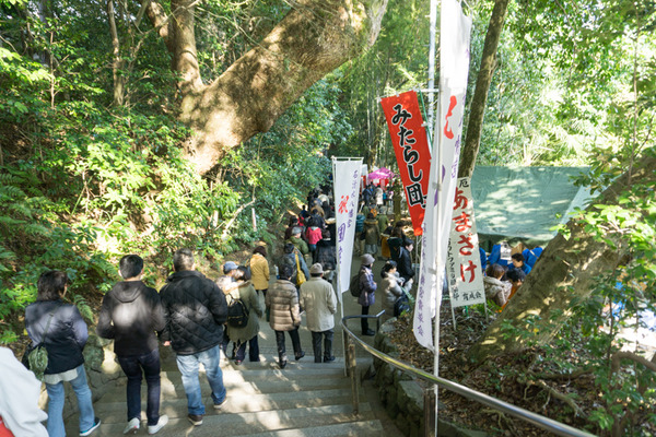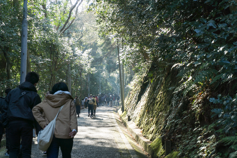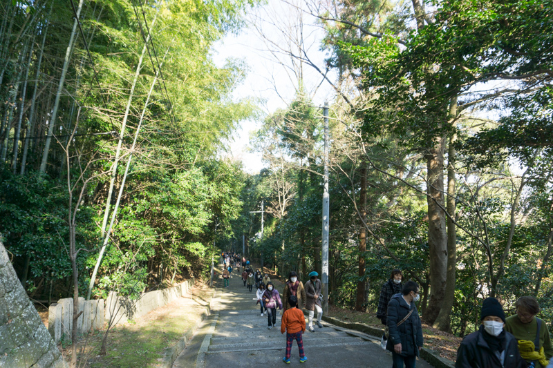 表参道の様子。たくさんの方が徒歩で上ってきていました。結構長い参道です。おつかれさまです。
