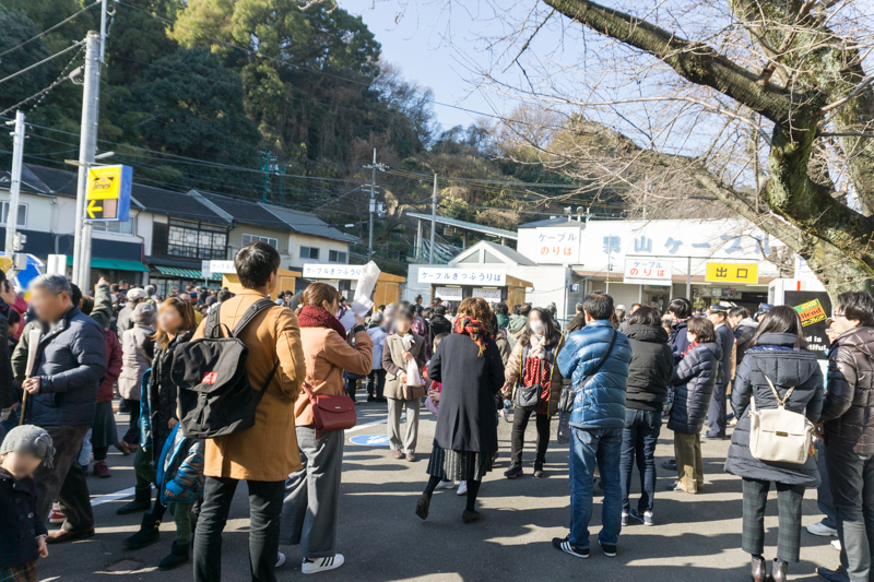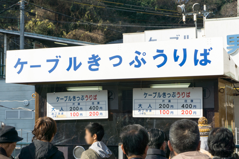 臨時切符売り場が出来ていて、たくさんの行列ができていました。ケーブルの料金は大人片道200円・往復400円です。子どもはその半額。