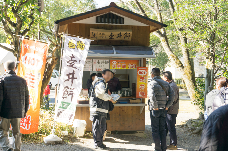 その手前には走井餅(以前ひらつーグルメでかき氷をご紹介しました)の出張販売所があります。下にも写真が出てきますが、八幡市駅前に本店があります。定番の走井餅は10個1,200円で販売していました。手みやげにぴったりですね!