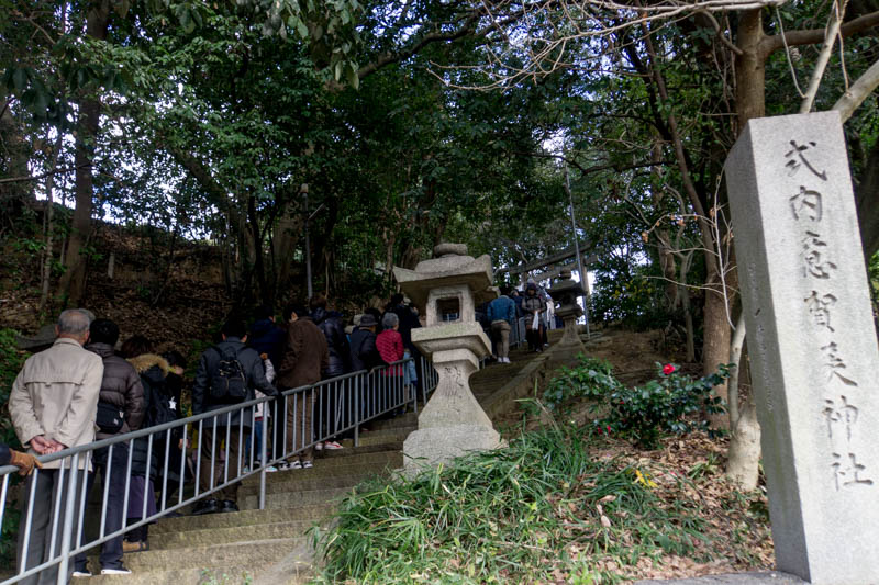 階段がぎゅうぎゅう詰めで、さすがにこれを抜かしていくこともできず、境内は確認できませんでした。大人気。