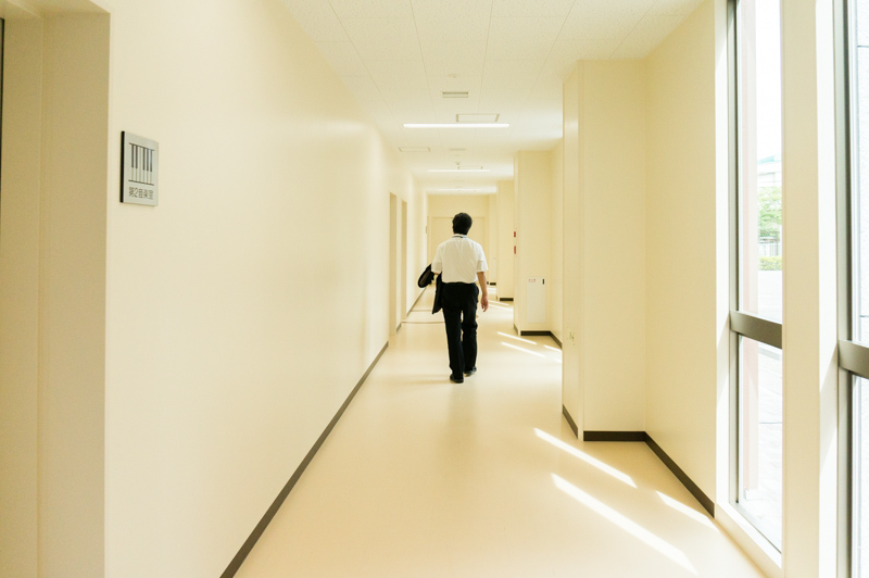 こちらは1階の音楽室等がある側のエリアの廊下部分。