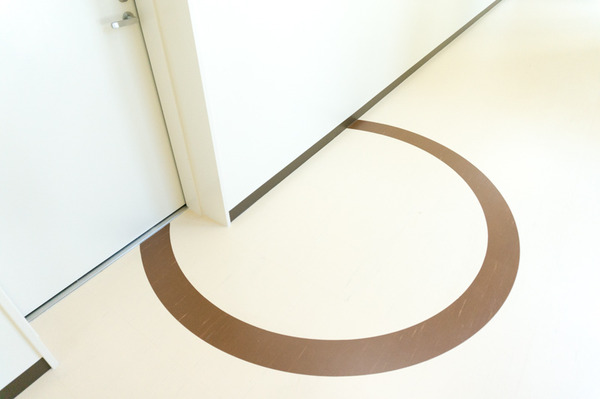 廊下には円が描かれていますが、デザインというわけではなく、後述する井戸があったところを示すマークなんだそう。