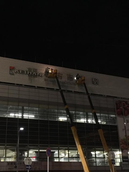 樟葉駅の文字は電車の「電」の雨の部分が白くなっていますが、枚方市駅のものはそうでもないのは、この期間に技術が進歩したからでしょうか。
