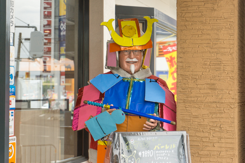 さて、毎年恒例ケンタッキーフライドチキンのカーネル・サンダース人形が今年も鎧武者になってます。
