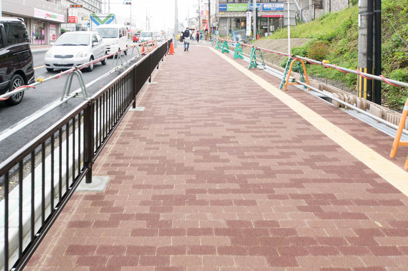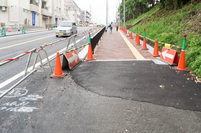 ここの歩道が細いところはまだそのまま。前述の張り紙によると今年着手とのこと。
