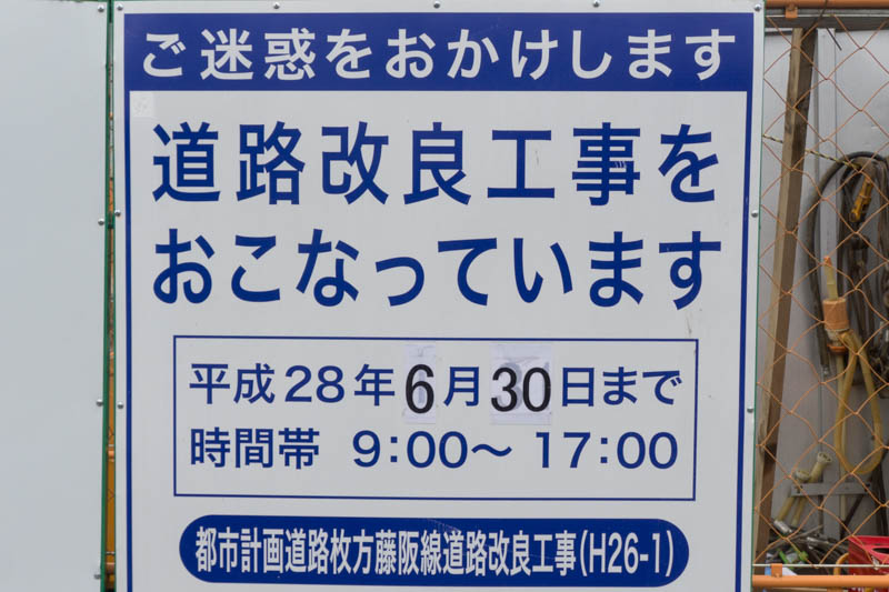 前回は日付が7月1日までだったので、1日早まった模様。だいたい同じ位置で撮影した看板ですが、よくみたら工事内容も変わっていました。