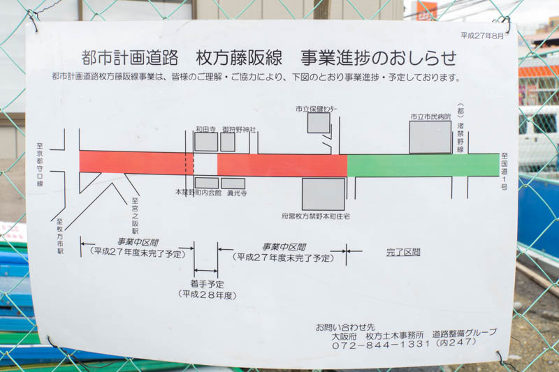 この辺で振り返って撮影。ここを直進して枚方市駅の方へ行けるようになるはずです。