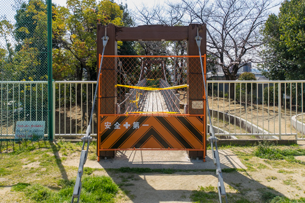香里の森公園の吊り橋が使えなくなっています。