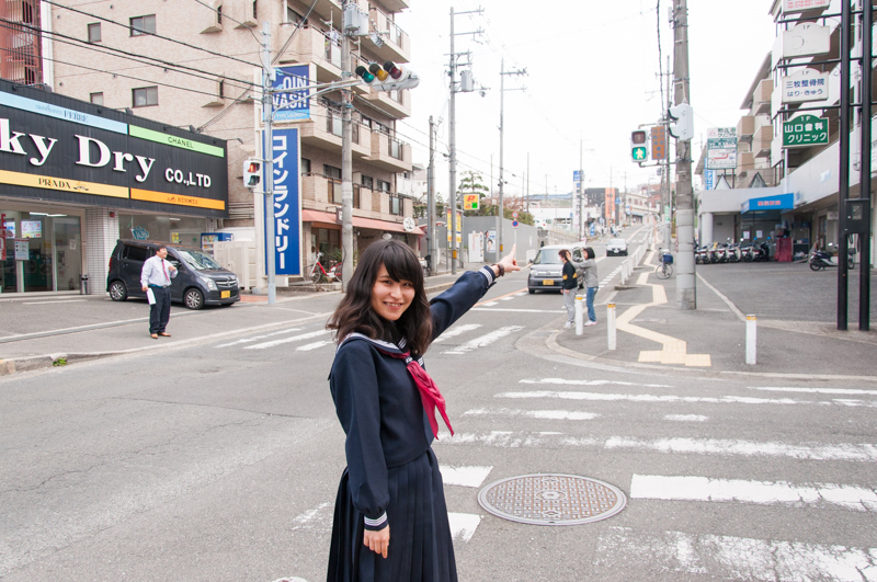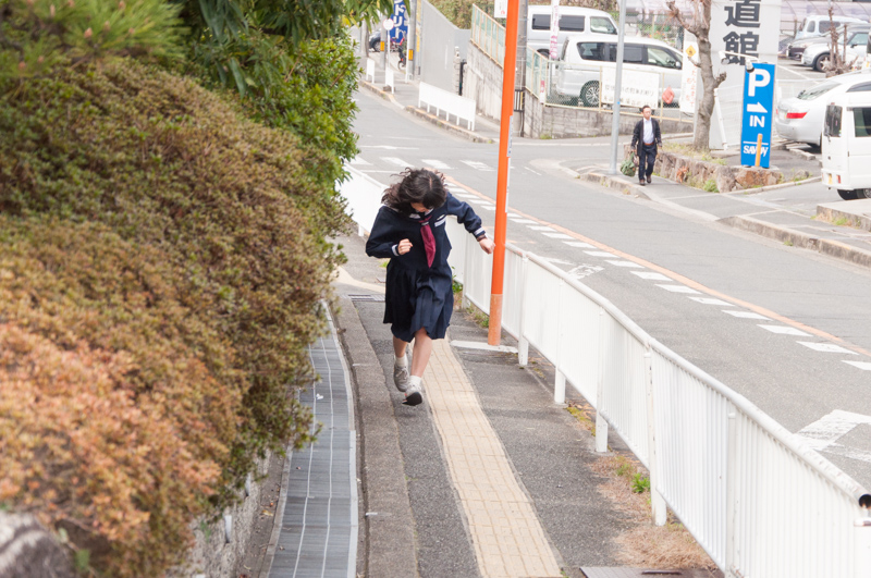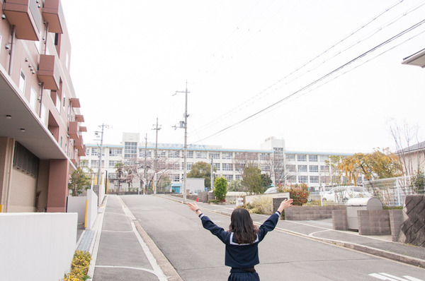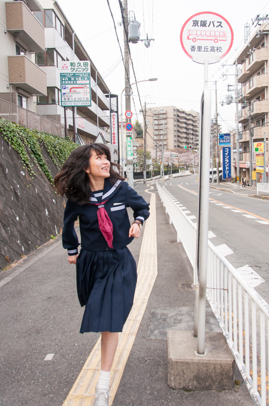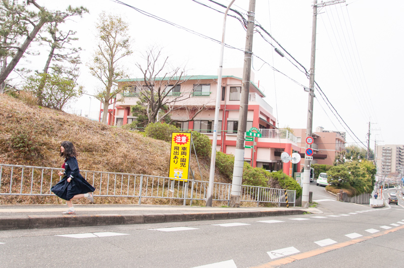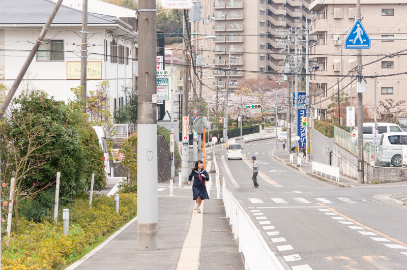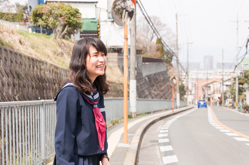 「香里丘高校の新入生はこれから毎日この坂をのぼるんか〜。3年間でめっちゃ体力つきそう!!」