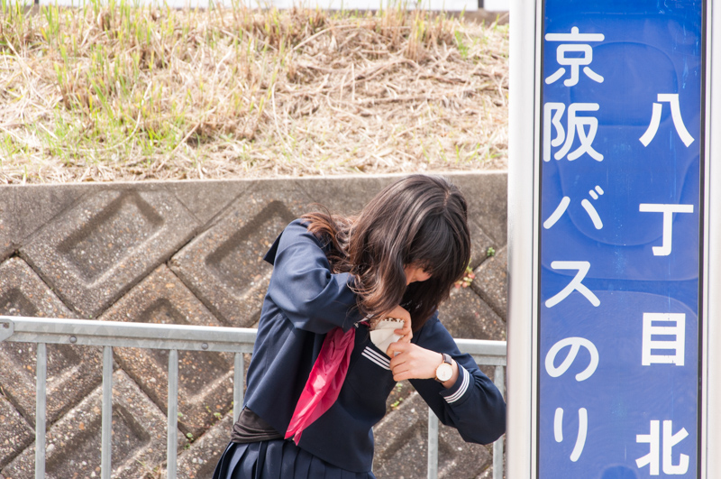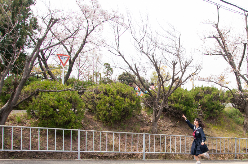 桜が咲き始めた「東中振西公園」をスタートに「香里丘高等学校」前の坂道を走ります。