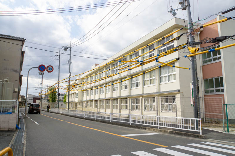 桜丘北小学校前で歩道拡幅工事については以前にも記事に。