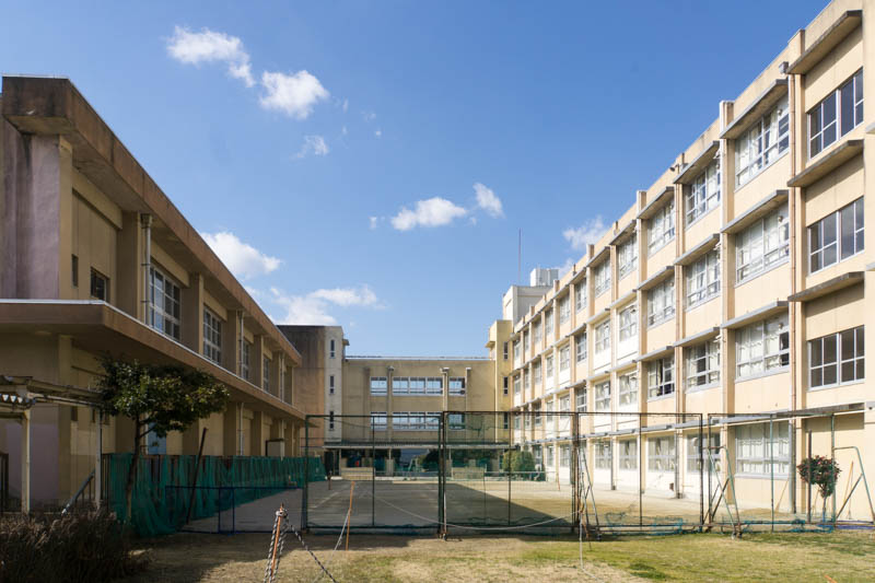 楠葉中はA棟とB棟の2つの4階建ての棟と体育館、平屋のC棟、そしてグラウンドといったかたちです。
