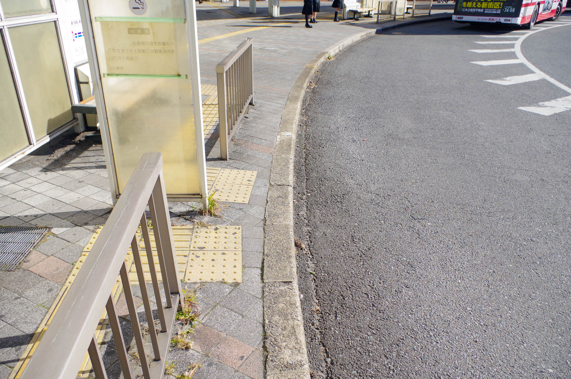 バス降り場の段差がなくなるんだそう。(バスを降りる所に三角の足場が)