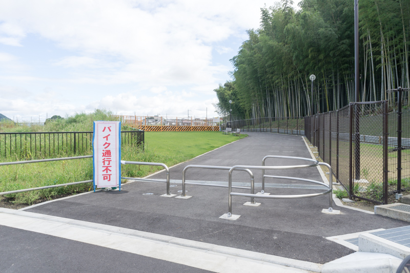 振り返ったところで場所で右側を見るとバイク通行不可で、徒歩自転車用の道が。