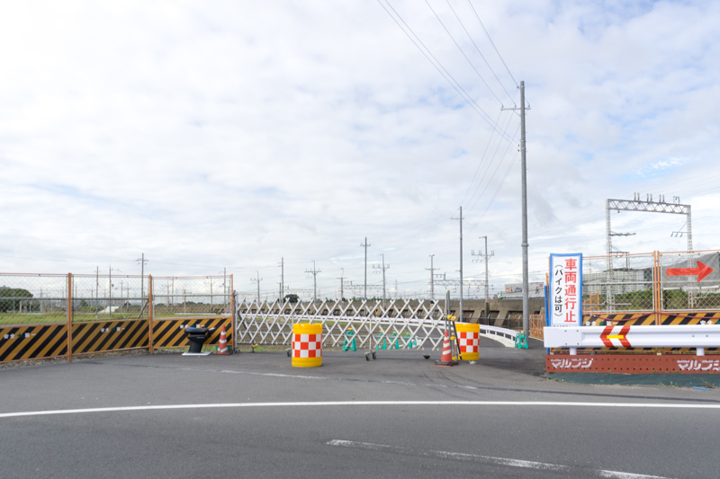 車両通行止(バイクは可)の文字。地図でいうとこの辺↓