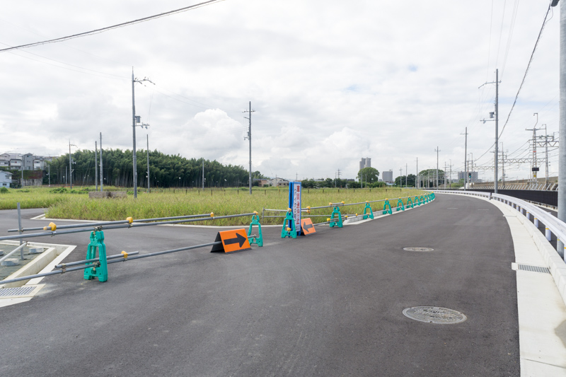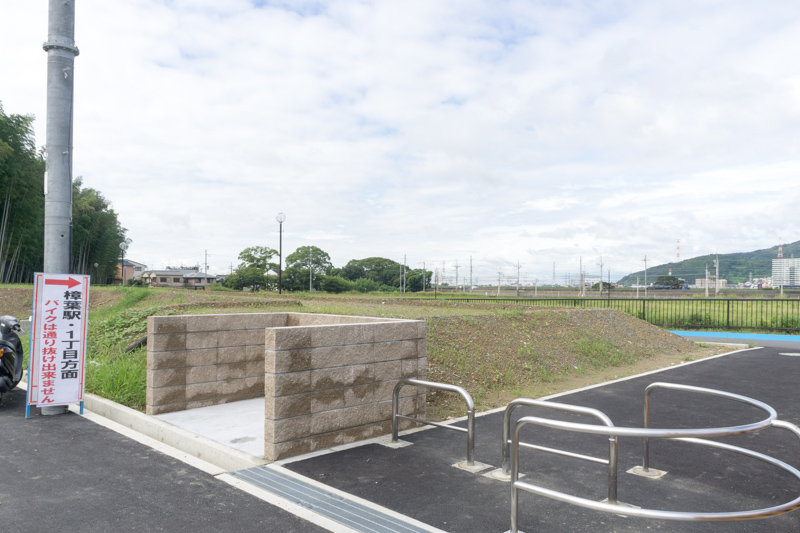 楠葉中之芝の線路沿いの道路が歩行者・自転車・バイクのみですが、通れるようになっています。