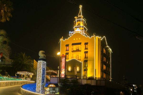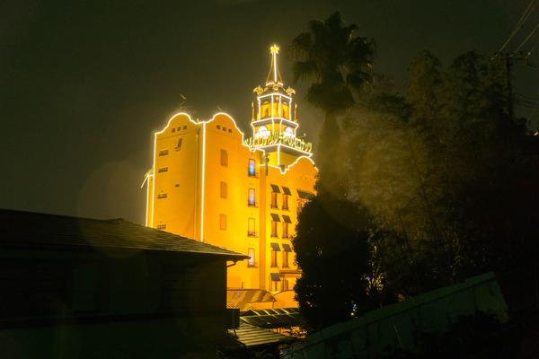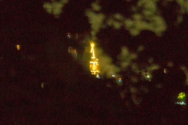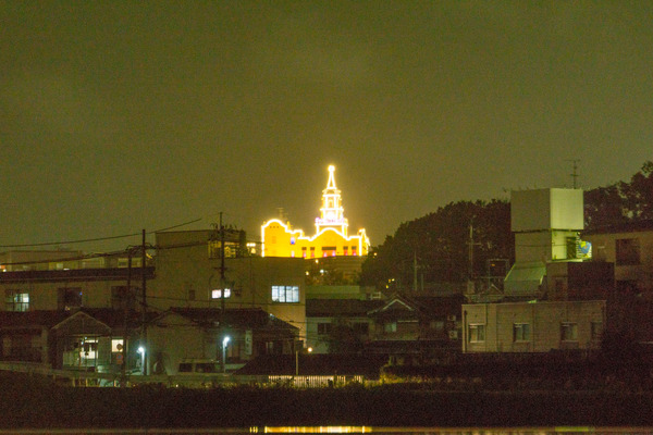 以前までも充分わかりやすい光り方をしていましたが、さらに存在感を増したチャペルココナッツ。遠くから見た方が存在感の増し具合がわかりやすいので、いろんなところから見てみました↓