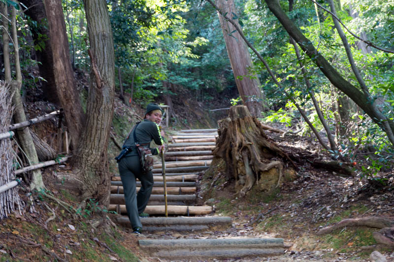 竹の杖のレンタルをやっていたのでお借りして、ここから舗装されていない道を進んでいきます。