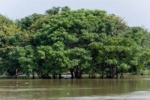 通路にはたくさんの木や泥などがあり、ここまで水面があがってきたようです。