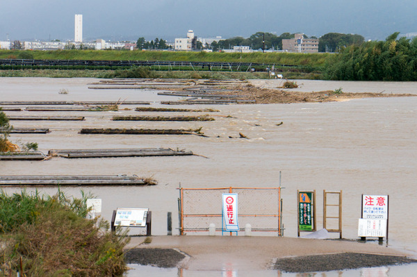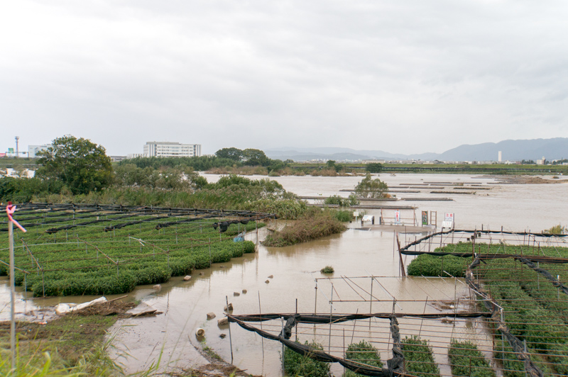 あまりに流されるので、昨年3月に流されにくくなるようにかさ上げして復旧されたばかりだった流れ橋。