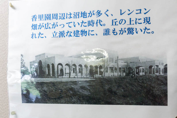 昔の校舎の様子。香里園周辺は沼地が多くてレンコン畑が広がっていたそうです。