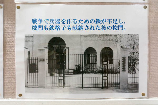 これは昔の写真の時に出てきた校門と同じく、戦時下の鉄を徴収された結果、このようなかたちになっているそう。歴史を感じます。