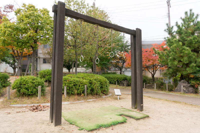 体操競技の吊り輪のような遊具や、雲梯(うんてい)、