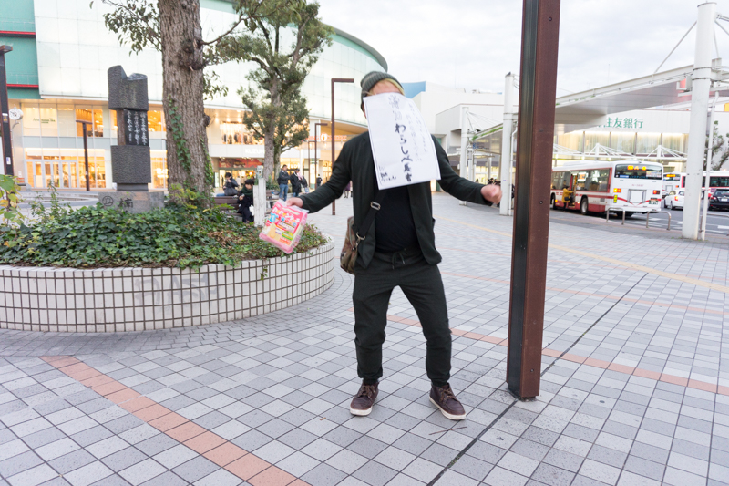 企画の内容を話すと、さっき買ったばかりのお子さんのおやつと交換してもらえる事に…。すどんの顔を見るなり泣き出してしまったお子さんに慌てるすどん。