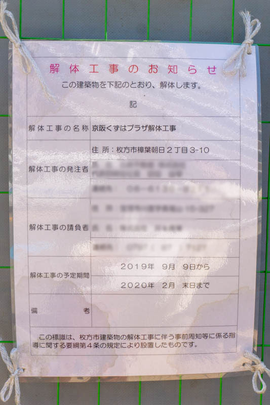バス停「あさひ」そばの『京阪くずはプラザ』が解体されています。