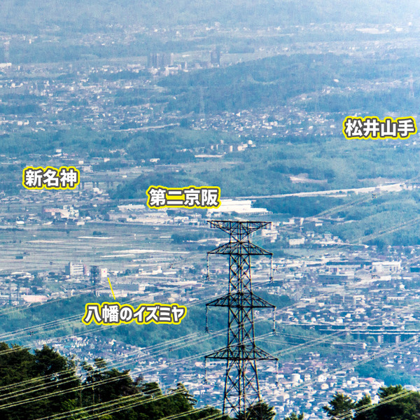 続いて穂谷や長尾周辺。右に続く山があるので、今回はこのコーナーの常連であるくずはタワーシティを見ることができませんでした。