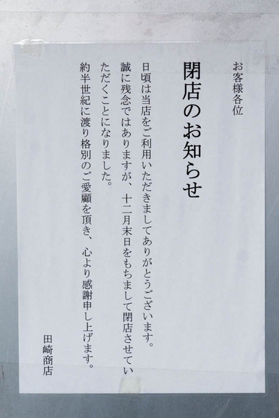 12月末で閉店とのことですが、昨年なのかもっと前なのか判断しかねたので記事タイトル表記は見送ることにしました。