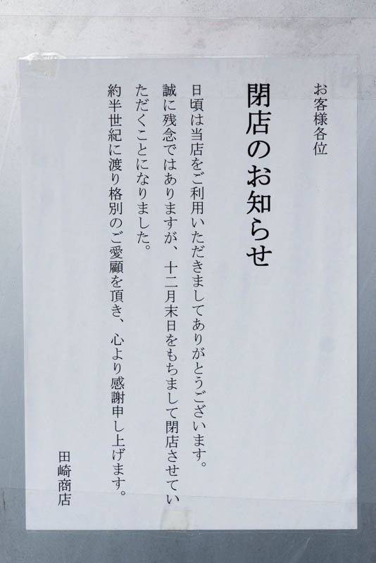 なお、このポストがある建物は「田崎商店」があるところで、そちらも閉店しているようです↓
