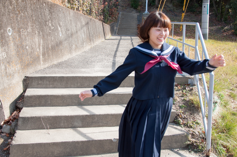 『地球屋』があるつもりで聖司くんを待っている風に撮影してみたんですが、何だか親に叱られて不貞腐れている少女みたいな写真に(笑)